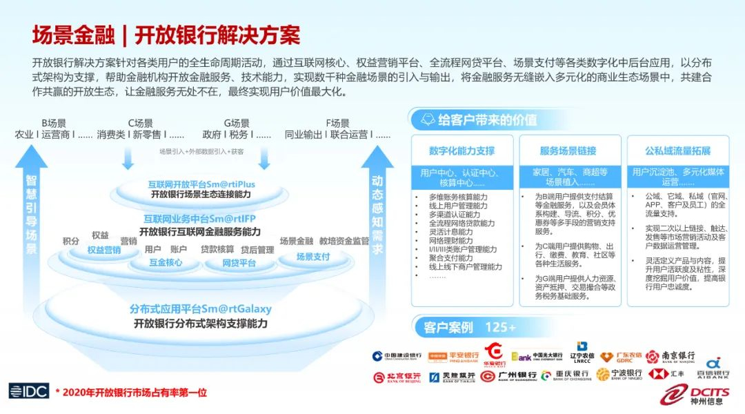 ——业务场景数据获取者:基于开放平台的场景数据的通道能力,可获得大量的场景业务数据,反哺银行业务能力建设;