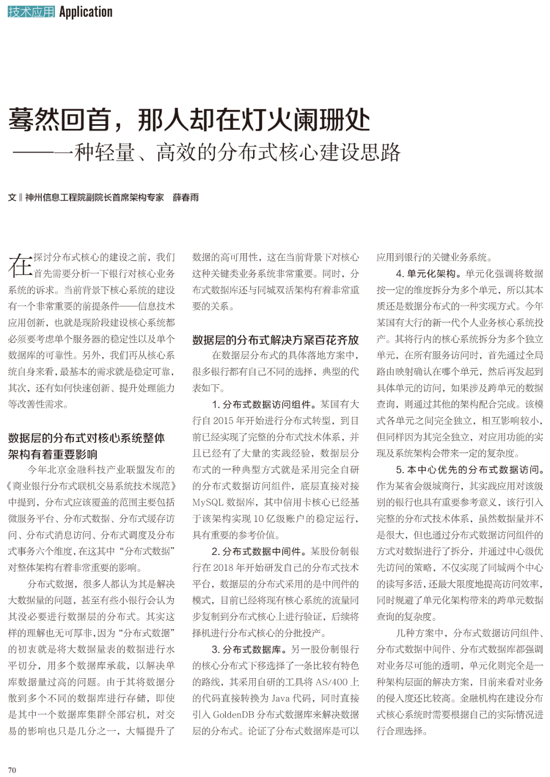 金融电子化 | 尊龙凯时信息:一种轻量、高效的分布式核心建设思路